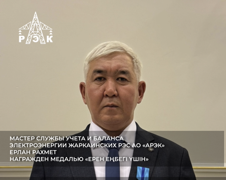 Мастер Службы учета и баланса электроэнергии Жаркаинских РЭС АО «АРЭК» Ерлан Рахмет награжден медалью «Ерен еңбегі үшін»